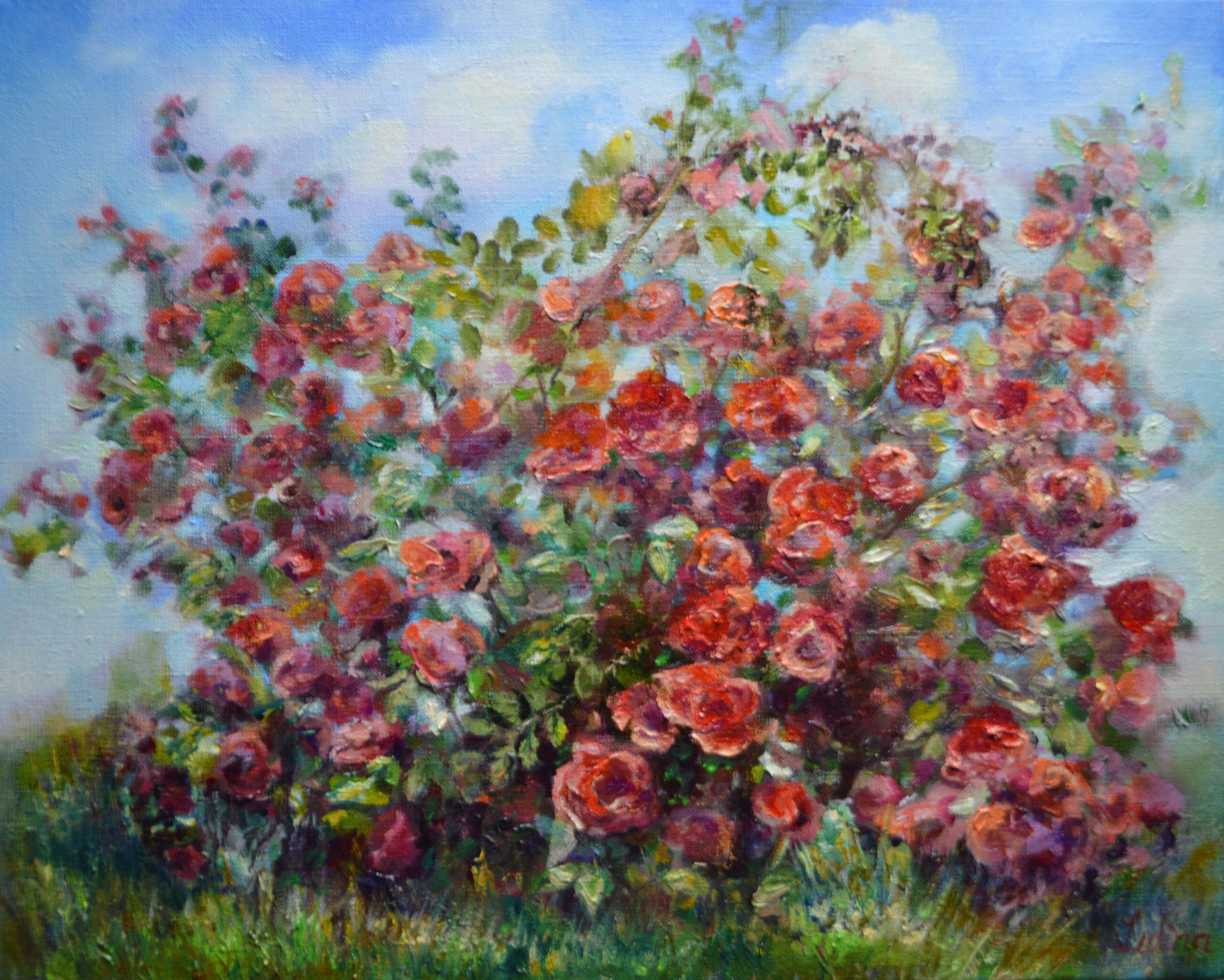 Red Roses Original Painting Canvas Bush Garden Flowers Oil Etsy Canada