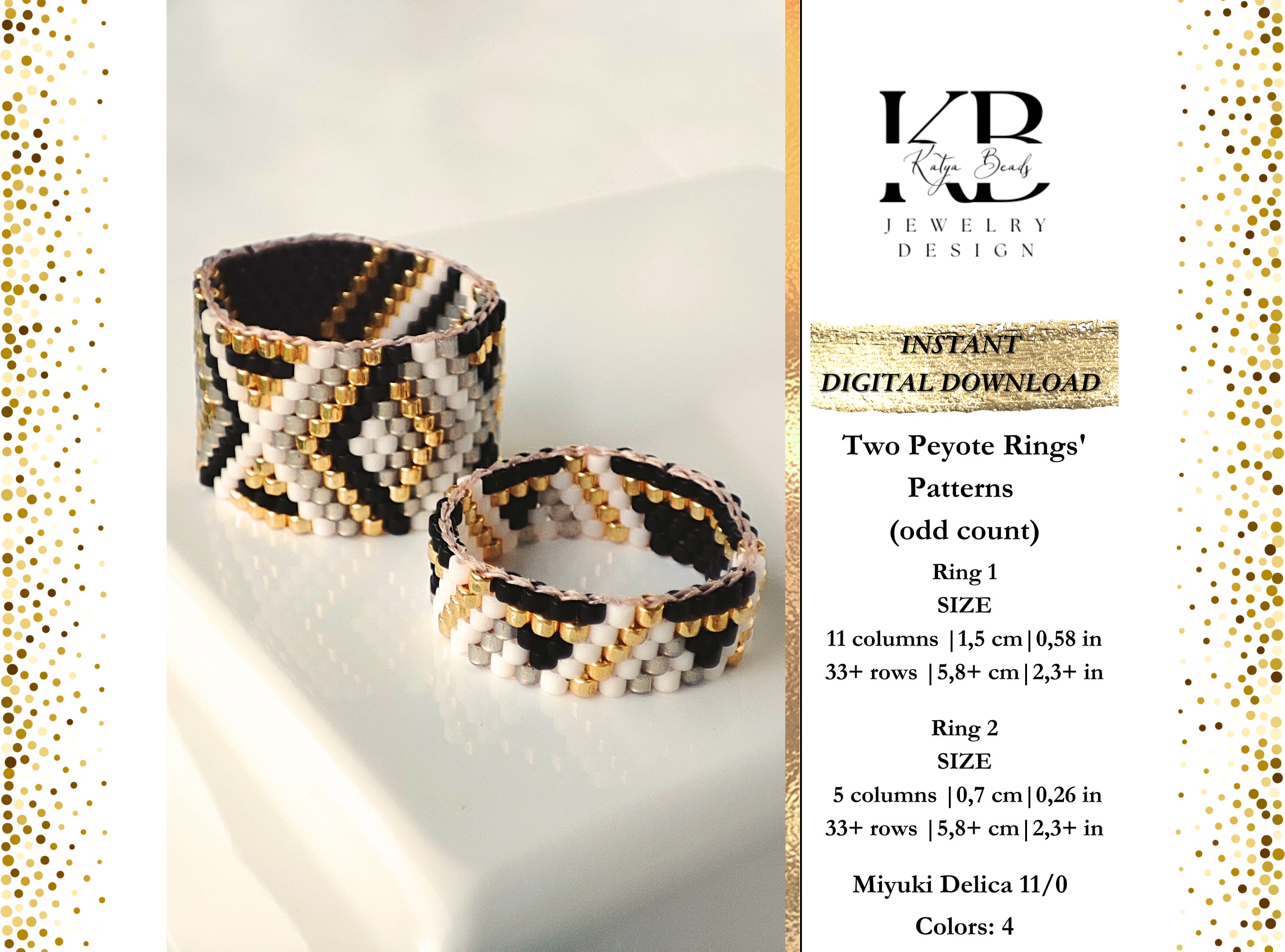 Two Peyote Bead Ring Patterns Odd Count Miyuki Delica Ring Etsy